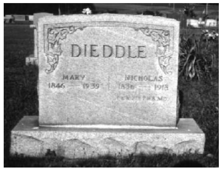 Nicholas Dieddle died on Nov. 23, 191819 and is buried in the Greenville Union Cemetery315, and his tombstone bears the following inscription315: